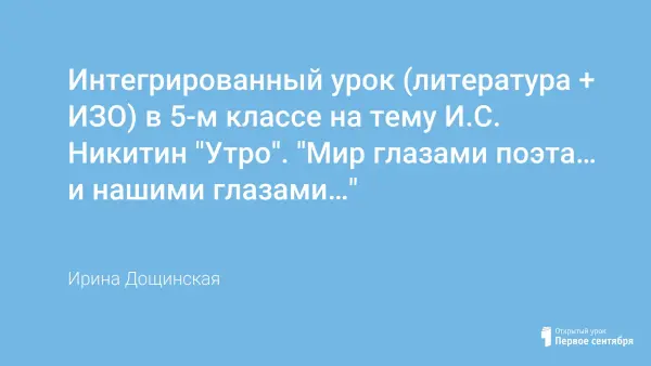 Интегрированный урок (литература + ИЗО) в 5-м классе на тему И.С. Никитин "Утро". "Мир глазами поэта… и нашими глазами…"