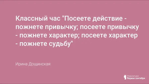 Классный час "Посеете действие - пожнете привычку; посеете привычку - пожнете характер; посеете характер - пожнете судьбу"