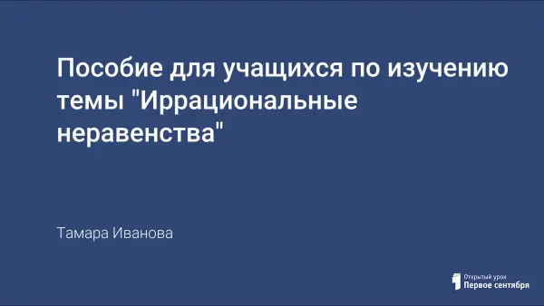 Пособие адресовано старшеклассникам средней общеобразовательной школы, а также поступающим в вузы как методическое руководство по решению иррациональных неравенств. В пособии подробно разобраны основные методы решения иррациональных неравенств, даны примерные образцы оформления решения иррациональных неравенств, приведены примеры решения иррациональных неравенств с парамётрами, а также предложены примеры для самостоятельного решения, для некоторых из них даны краткие ответы и указания. Учителя могут использовать пособие как дидактический материал для проведения самостоятельных работ, при обзорном повторении темы "Иррациональные неравенства".