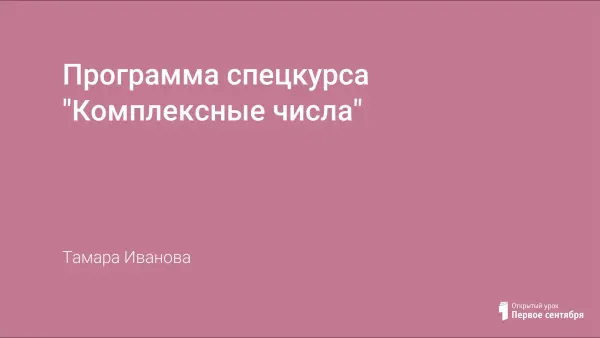 Данный курс преследует цель углубления и расширения развития понятия числа, обобщения понятия числа – знакомство с комплексными числами, что является естественным завершением изучаемых в школе числовых систем. В результате изучения курса учащиеся должны хорошо представлять развитие понятия числа, связь между действительными и комплексными числами. Уметь выполнять арифметические действия с комплексными числами в алгебраической и тригонометрической формах, геометрически изображать комплексные числа, уметь применять комплексные числа при нахождении корней многочленов, доказательстве тригонометрических формул и др.