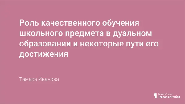 Дуальное образование соединяет общеобразовательную подготовку с профессиональной и выполняет современное требование к образованию – успешное включение выпускника в социум. Большую роль в успешности человека в жизни играет школа. А среди школьных предметов, в силу своей специфики, – математика.