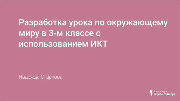 Предлагается разработка урока по окружающему миру в 3-м классе с использованием мультимедиапрограммы "Природа и человек". Программа работает в трех режимах: обучение с "обратной связью" под управлением программы, обучение в свободном режиме и тестирование. Результаты работы выводятся на экране.