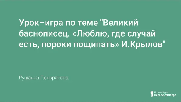 Басни И.А. Крылова давно уже не факт истории литературы, а факт языка. Единственное, что угрожает его незыблемой национальной славе, - это неизбежные изменения в русском литературном языке, из-за которых он перестает быть понятным современным детям. И все-таки даже малыши охотно слушают его мудрые немудрящие истории о том, как не надо себя вести.