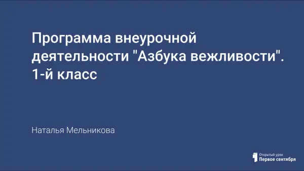 Программа для 1-го класса реализует духовно-нравственное направление во внеурочной деятельности и соответствует ФГОС НОО. Главное назначение программы – формирование навыков общения, культуры поведения первоклассников, развитие и совершенствование их нравственных качеств, ориентация на общечеловеческие ценности. Содержание программы ориентировано на игровые, творческие формы, проектную деятельность. Это позволяет в яркой форме довести до сознания ребёнка представления о внутреннем мире человека.