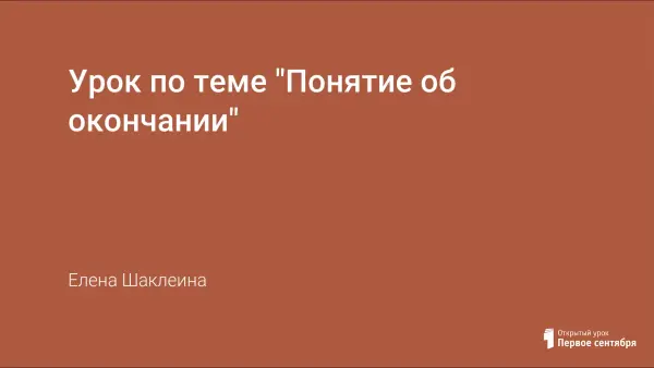 На данном уроке дети знакомятся с окончанием и его функциями, усваивают определение окончания, а также на практике постигают различие между изменением слова и образованием родственных слов, отрабатывают умение находить в слове окончание. В течение урока идёт работа над орфографией, развитием речи. При выполнении различных заданий (отгадывание загадок, заполнение кроссворда, подбор группы родственных слов) у учащихся развивается умение сопоставлять, логически мыслить, анализировать. Уровень усвоения нового материала проверяется при выполнении теста.