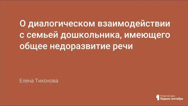 В статье обосновывается необходимость сотрудничества с родителями для более успешного преодоления общего недоразвития речи у дошкольников; представлен опыт диалогического взаимодействия с семьей (на примере совместного занятия для родителей и детей старшей логопедической группы).