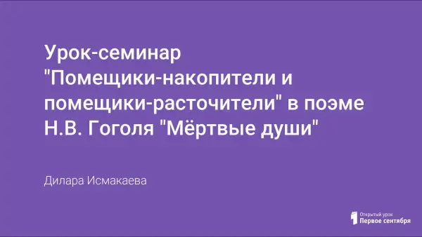 Цель урока: раскрыть характеристику образов помещиков; выделить главные черты характера, особенности портрета; показать нравственное разложение помещичьего класса; приобщить учеников к исследовательской работе; развить интерес к творчеству Н.В. Гоголя.
