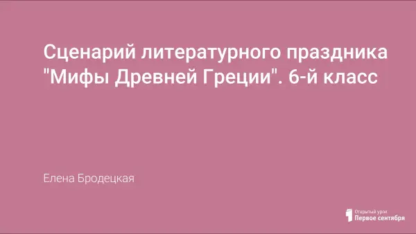 Литературный праздник позволяет расширить рамки школьной программы, дает возможность учащимся проявить творческие способности в написании шуточного сценария "Современный Олимп", в актерской игре, продемонстрировать знания и умения в конкурсах "Литературная викторина", "Знатоки живописи и скульптуры", "Черный ящик", "Конкурс пантомим" и др. Праздник предназначен для учеников 6-го класса, материал можно использовать на уроках истории, МХК.