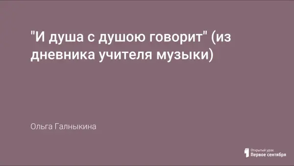 "И душа с душою говорит" (из дневника учителя музыки)