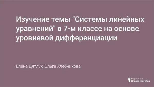 Изучение темы "Системы линейных уравнений" в 7-м классе на основе уровневой дифференциации