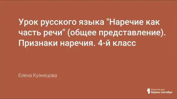 Цель урока: дать первое представление о наречии как части речи; познакомить с некоторыми существенными признаками этой части речи и её ролью в нашем языке.
