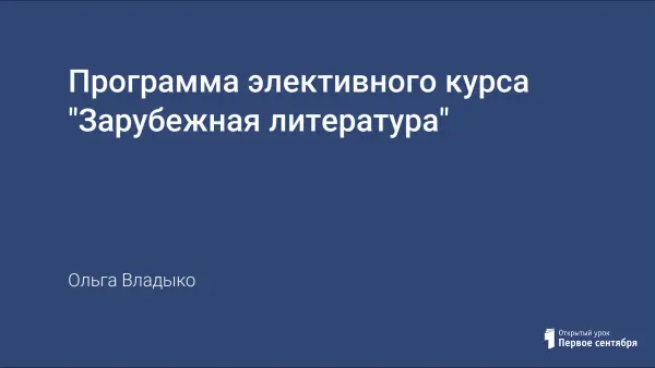 Курс представляет собой интегрированную программу, включающую в себя элементы таких учебных дисциплин, как «Литература» и «Иностранный язык». Он рассчитан на один год обучения в 9—11-х классах гуманитарного и филологического профиля для введения учащихся в западное культурное пространство Европы и США в соответствии с нормами и ценностями открытого общества.