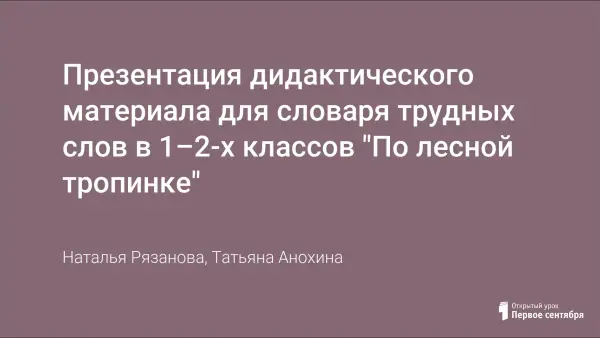 Презентация дидактического материала для словаря трудных слов в 1–2-х классов "По лесной тропинке"