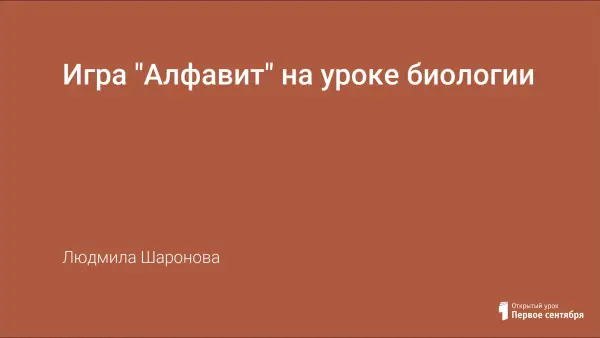 В статье представлен материал игры "Алфавит" для 8-10-x классов. 8 класс: Птицы и Млекопитающие. 9 класс: Неделя биологии в школе. 10 класс: Генетика и селекция. Игра, как форма учебных занятий на уроках комплексного применения знаний по биологии, а также во время проведения недели биологии. Игра на уроке помогает учителю отслеживать динамику развития личности ученика.
