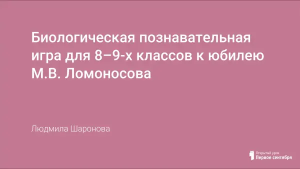Биография Ломоносова – это биография «молодой науки российской». Его идеи послужили становлению биологии. В связи с этим мной организована игра, показывающая учащимся Ломоносова как биолога и просветителя. Игра предназначена для учащихся 8–9-х классов.
