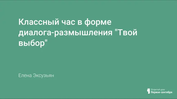 Классный час в форме диалога-размышления для выпускников и их родителей создает условия для осознанного выбора жизненного пути по формуле: "ХОЧУ + МОГУ + НАДО" и способствует формированию ответственного отношения к своему здоровью.