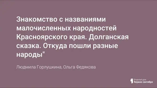 Знакомство с названиями малочисленных народностей Красноярского края. Долганская сказка. Откуда пошли разные народы"