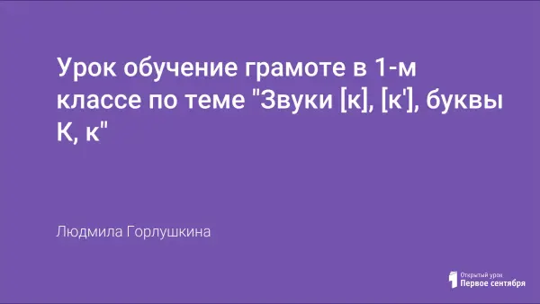 На уроке обучения грамоте учащиеся знакомятся со звуками [к], [к'] и буквой, которая их обозначает. Учатся читать слоги, слова с новой буквой, также развивают внимание, мышление, речь, учатся доброму отношению к животным. Большое значение уделяется на уроке здоровьесберегающему компоненту.