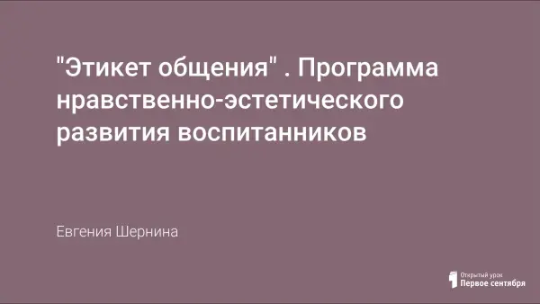 Авторская программа "Этикет общения" для воспитанников социально-реабилитационного центра для несовершеннолетних направлена на формирование первичных навыков культурного общения и речевого поведения со сверстниками и взрослыми людьми. Программа предназначена для детей 8–12 лет, имеющих нарушения в коммуникативной сфере.