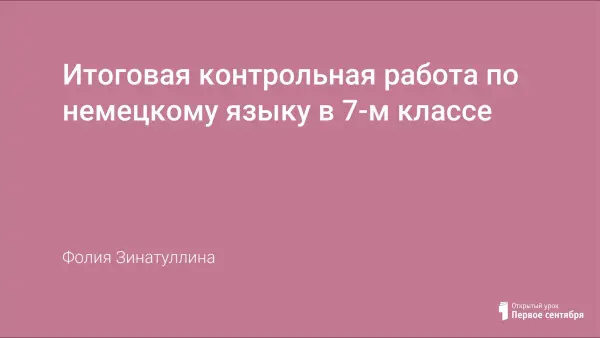 Тексты заданий по немецкому языку предназначены для выполнения итоговой контрольной работы по трём видам речевой деятельности: чтение, аудирование, письмо. Задания охватывают лексические ("Der Naturschutz", "Auf dem Lande", "Sport") и грамматические темы за курс 7-го класса.