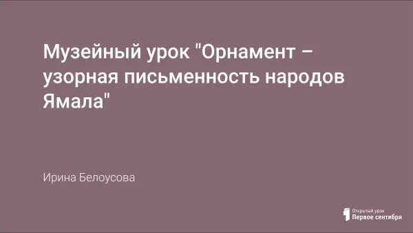 Музейный урок "Орнамент – узорная письменность народов Ямала"