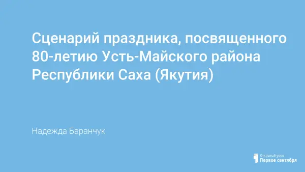 Летом 2011 года в нашем дошкольном учреждении прошло мероприятие, посвященное 80-летию Усть-Майского района республики Саха (Якутия), целью которого явилось расширение представлений детей о родной стране, о государственных и национальных праздниках; развитие интереса к истории своей страны и республики, в которой они живут; воспитание гордости за свою страну, любви к ней.