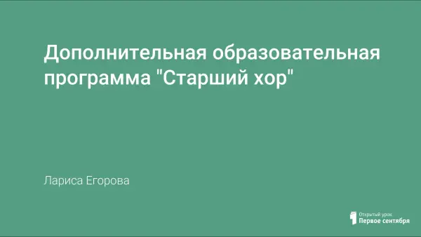 Образовательные программы музыкального профиля деятельности относятся к давно устаревшим и не соответствуют современным требованиям. Автору представилось целесообразным обобщить опыт работы в этом направлении современных педагогов – хормейстеров, работающих с детьми старшего школьного возраста, свой собственный опыт преподавания хорового класса и на этой основе создать дополнительную образовательную программу по предмету «Старший хор».