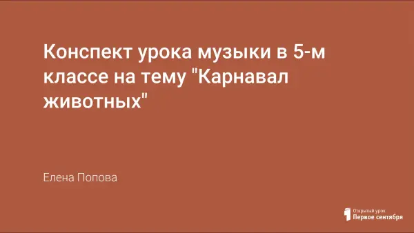 Представленный вашему вниманию конспект урока музыки в 5-м классе соответствует программе Д.Б. Кабалевского, по которой я работаю 15 лет. Знакомясь с новыми, более современными, на первый взгляд, программами по предмету "Музыка" и не умаляя их достоинств, я все-таки остаюсь приверженцем строгого и четкого тематизма программы Кабалевского. Согласна, что с течением времени музыкальный материал программы устарел, исключение составляют классические произведения, но творчество учителя, на мой взгляд, и заключается в поиске современно звучащих музыкальных произведений, новых форм и методов преподавания музыки.