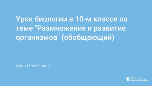 Целью урока является повторение и обобщение знаний о делении клеток как основе роста, размножения и индивидуального развития организмов; о процессах, протекающих в период интерфазы и митоза, их значении; об особенностях строения, развития и функциях половых клеток; об особенностях мейоза, оплодотворения и их биологическом значении; об этапах эмбрионального и постэмбрионального развития; об использовании знаний о размножении и развитии организмов в здравоохранении.