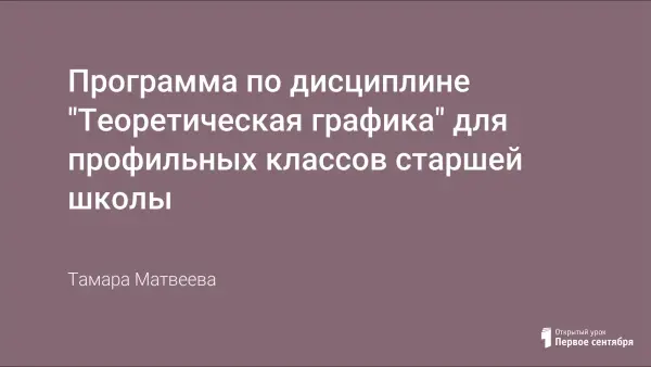 Обучение графике по данной программе обеспечивает развитие пространственного мышления, преемственность между средней и высшей школой и пропедевтику начертательной геометрии как одной из основных дисциплин технического и художественно-графического образования.