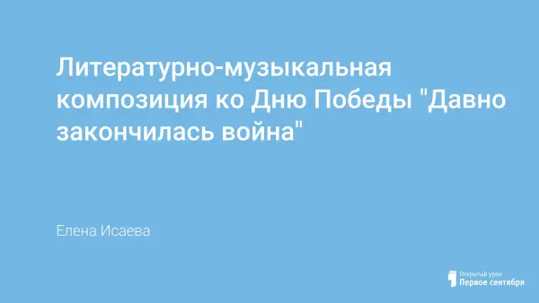Литературно-музыкальная композиция к 9 Мая была подготовлена и проведена в ГОУ СШ № 911. Получила высокое одобрение у ветеранов Великой Отечественной войны.