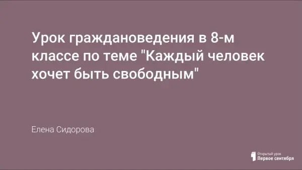 Урок граждановедения в 8-м классе посвящен свободе личности в обществе, показывает ценность свободы для человека.