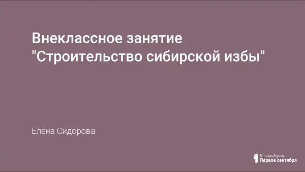 Внеклассное занятие посвящено знакомству с особенностями строительства сибирской избы. Занятие построено в форме диалога учитель – ученик, для наглядности используется компьютерная презентация. Для закрепления материала учащиеся выполняют познавательные и игровые задания.