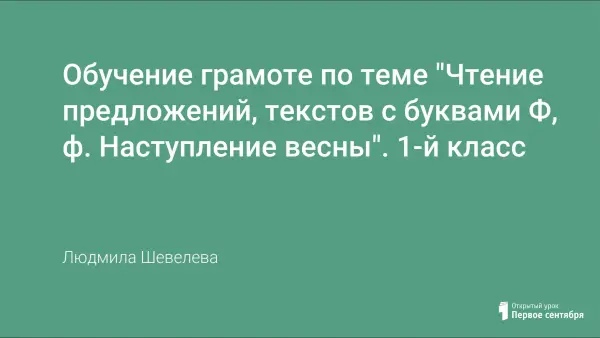 Обучение грамоте в 1-м классе по теме "Чтение предложений, текстов с буквами Ф, ф. Наступление весны" проводится под девизом "Мы любим друг друга, понимаем и помогаем".