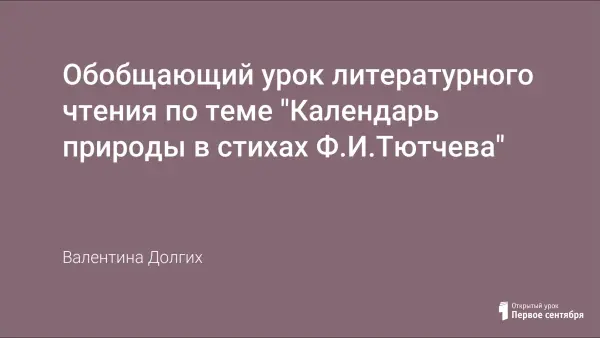 Обобщающий урок литературного чтения по теме "Календарь природы в стихах Ф.И.Тютчева"