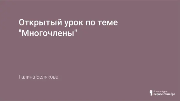 На уроке вводится понятие многочлена, учащиеся учатся определять степень многочлена и приводить его к стандартному виду.