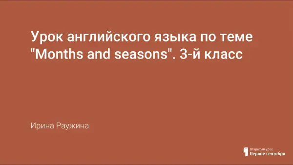 Урок английского языка в 3-м классе разработан в соответствии с УМК Биболетовой М.З. и направлен на формирование коммуникативной компетенции обучающихся с использованием лексики по теме «Months and seasons». Используемые методы и формы работы позволяют эффективно организовать работу по развитию всех видов речевой деятельности, а применение обучающей компьютерной программы «Enjoy Listening and Playing» позволяет сделать обучение аспектам английского языка интересным и увлекательным занятием.