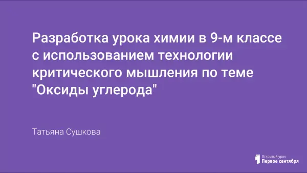 В данной работе представлена разработка урока химии в 9-м классе с использованием технологии критического мышления по теме "Оксиды углерода", цели которого – расширить кругозор обучающихся, дать знания о строении, свойствах, роли в природе и применении человеком углекислого и угарного газов.