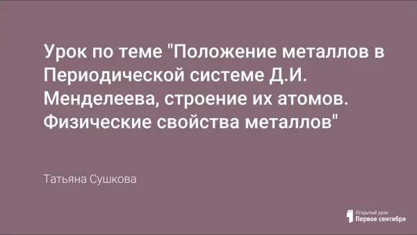 В данной работе представлена разработка урока химии по учебнику О.С. Габриеляна (9-й класс) по теме "Положение металлов в периодической системе Д.И. Менделеева, строение их атомов. Физические свойства металлов", целью которого является создание условий для осознания и осмысления блока новой учебной информации средствами критического мышления.