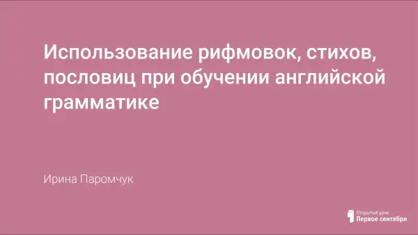 Использование рифмовок, стихов, пословиц при обучении английской грамматике позволяет сделать этот процесс более эффективным и занимательным.