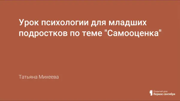 Данный урок психологии проведен в 5-м классе средней школы. Тема урока: "Самооценка". В младшем подростковом возрасте появляются проблемы общения и самопознания. У школьника возникает желание понять, лучше узнать себя и появляется потребность в самооценке. Но он чувствует, что не умеет, не может оценить себя, ему сложно думать, а тем более говорить о себе. Возрастает чувство "Я", растет негативное самовосприятие и самооценка. Урок дает возможность развить рефлексивный анализ, повысить интерес к собственному внутреннему миру, положительному самовосприятию и групповому взаимодействию.