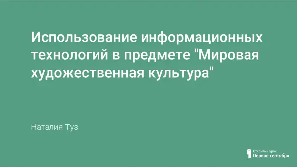 Интеграция лежит в основе курса МХК и является основным принципом построения его программы. Современный уровень развития информационных технологий предъявляет определенные требования к решению этой проблемы, поэтому завершающим этапом реферативной или проектной работы является подготовка мультимедийной презентации, которая проводится под руководством преподавателя. Так, в представленном конспекте урока в 10-м классе на тему "Золотой век Афин. Великий рассвет?" мы видим один из примеров использования мультимедийной презентации, составленной самими учащимися.
