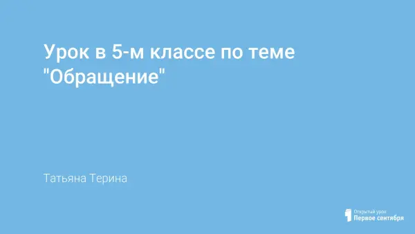 Тема "Обращение" только на первый взгляд кажется учащимся 5-го класса постой. Как показывает практика, при нахождении обращений ребята часто видят лишь имена, клички животных, а обращения к неживым предметам не замечают. На эту тему я отвожу два часа. Я хочу предложить разработку первого урока по данной теме. На первом уроке вводятся основные понятия из темы "Обращение", а на втором – закрепление и обобщение изученного.