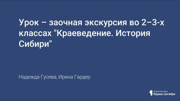 Урок – заочная экскурсия во 2–3-х классах "Краеведение. История Сибири"