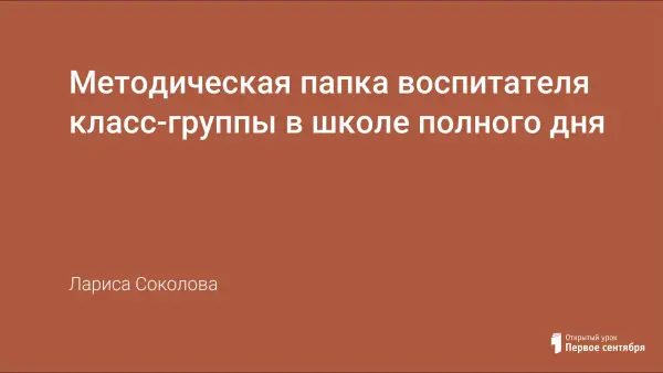 Методическая папка воспитателя класс-группы в Школе полного дня в помощь администрации Школ полного дня. Создана на основе опыта работы.