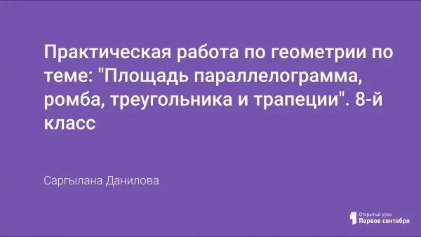 В своей практике при изучении темы "Площади" в 8-м классе я использую такую форму, как практическая работа. Обучение ведется по учебнику "Геометрия 7–9", авторы Л.С. Атанасян, В.Ф.Бутузов, С.Б. Кадомцева, Э.Г. Позняк, И.И. Юдина. Учащиеся заранее заготавливают дома фигуры из цветной бумаги (параллелограмм, ромб, прямоугольный, равнобедренный и разносторонний треугольники, трапеция равнобокая и с разными боковыми сторонами). Перед учащимися стоит задача нахождения площади данных фигур путем перекраивания и складывания новой фигуры до прямоугольника, а также выводится формула площади. После этого исходная фигура приклеивается на чистый лист А4, а рядом перекроенная или достроенная фигура с выводом формулы площади. Здесь используется свойство площади: если многоугольник составлен из нескольких многоугольников, то его площадь равна сумме этих площадей, а также идея достроения фигуры до прямоугольника путем перекраивания. При такой форме работы ученики наглядно как бы "видят", как выводится формула, и лучше усваивают тему.