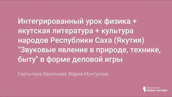 Интегрированный урок физика + якутская литература + культура народов Республики Саха (Якутия) "Звуковые явление в природе, технике, быту" в форме деловой игры