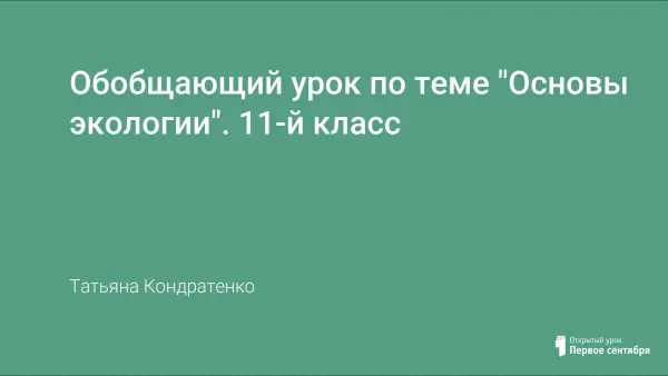 Урок проводится в 11-м классе в ходе изучения раздела «Основы экологии». Это заключительный урок по теме. Проводится в форме пресс-конференции с целью обобщения и расширения знаний учащегося по основным вопросам экологии.