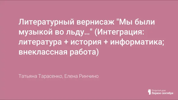 Литературный вернисаж "Мы были музыкой во льду…" (Интеграция: литература + история + информатика; внеклассная работа)