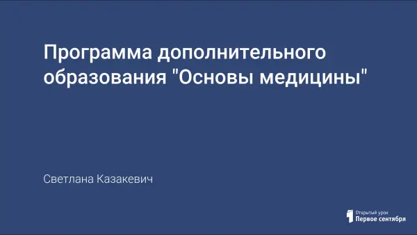 Возрастает роль медицины как учебного предмета в расширении представлений учащихся о научно обоснованных правилах и нормах здоровья, формировании основ здорового образа жизни и грамотного поведения людей в различных жизненных ситуациях. Адаптивный спецкурс "Основы медицины" предназначен для учащихся 4–8-х классов и прекрасно дополняет курсы химии, биологии в плане рассмотрения вопросов валеологии. Цель: cформировать элементарные знания в области гигиены и медицины.
